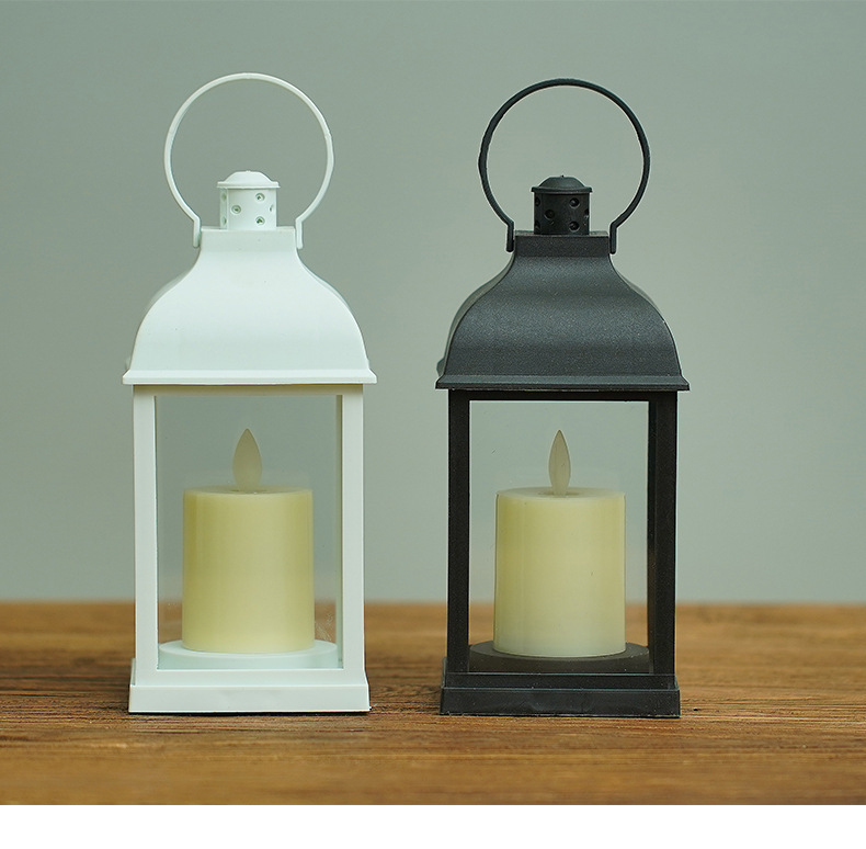Creative Wind Lamp Small Lantern Electronic Candle Lamp Candle Holder Retro Square Simulation Candle Christmas Candle Decoration Span
